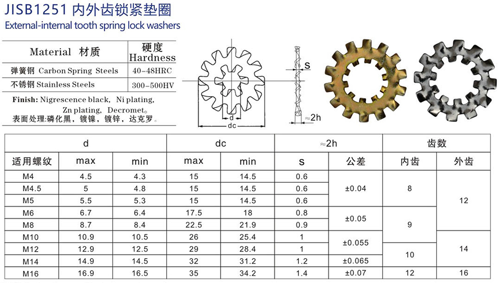 与螺栓或螺母配合使用,用于减少摩擦,防止松脱或分散压力,经硬化处理后折角齿面会起到较好剌破和锁紧作用。