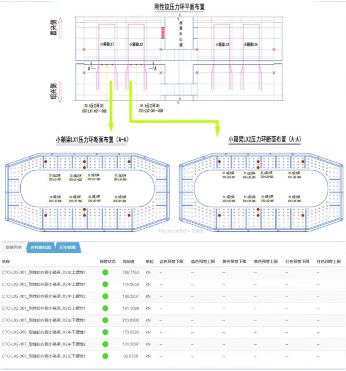被监测的16个螺丝的“一举一动”,全部实现了数据化的呈现,从此对于螺丝紧固力的判断就有了清晰而科学的数据,告别了“敲敲打打”。并且这对其它螺丝的受力情况提供了参考。