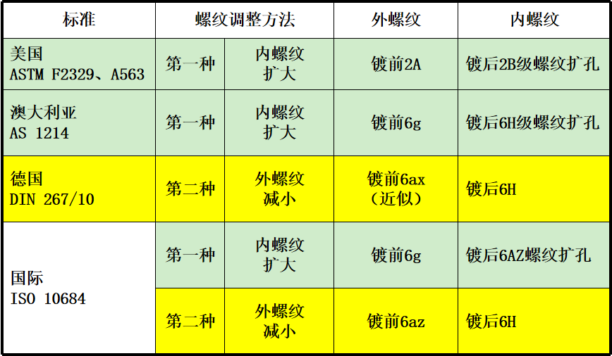 ASTM F2329-2015标准第5.4.2“外螺纹紧固件的热浸镀锌后应满足规定的螺纹配合的要求”。