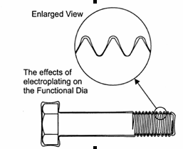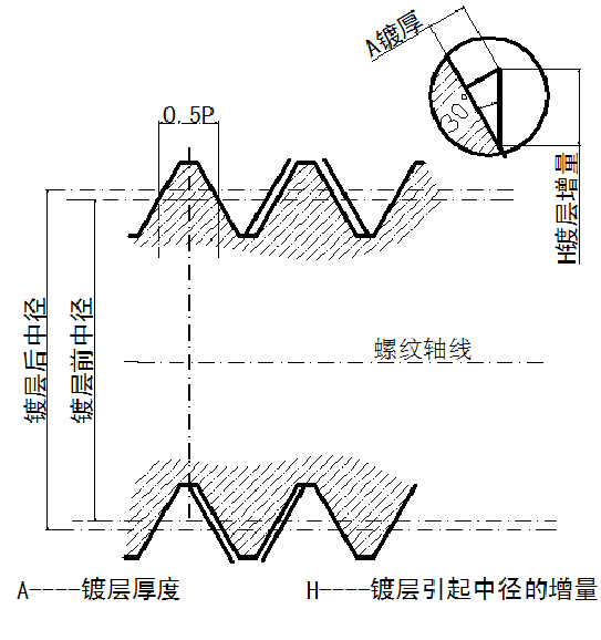 螺栓头部和螺栓末端的镀层比中间要厚些;由此镀层的不规则性势必更要影响到螺纹的干涉与配合,同时由于三角齿型的关系,镀层厚度在螺纹上中径当量的影响是4A倍的关系,所以不同镀层厚度对中径的影响要进行适当的调整。