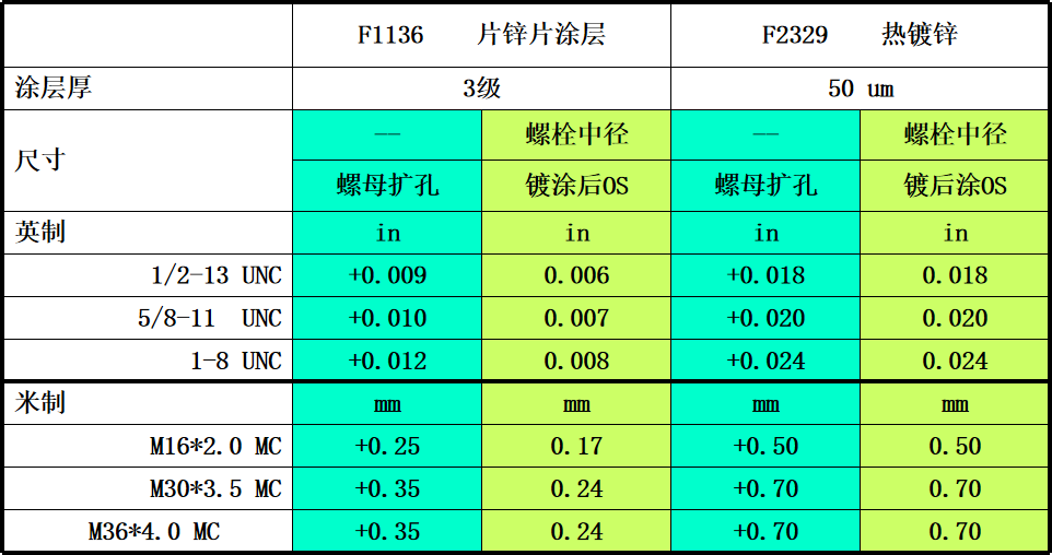 美制推荐达克罗和热镀锌螺纹中径调整量