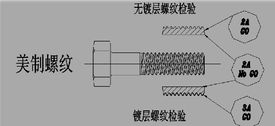 在ASME B1.1《美制统一螺纹》标准中第7.2节镀层螺纹的极限尺寸规定:“没有其它规定,在镀锌前外螺纹紧固件的螺纹检验用2A级螺纹量规,外螺纹的偏差是容纳镀层厚度,但最大镀层厚度不允许大于1/4的螺纹偏差。”