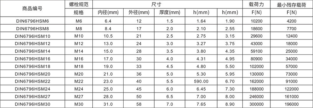 ![]() | 高张力碟形垫圈弹性张力更强,应用于强动力负载高铁动车防松紧固联接装备。碟形弹簧垫圈属于安全紧固件类别,因此专业制造能力会要求较高,需要做静态负负载承压及动态压力载荷测试!高张力形垫圈用途广泛,一种与螺栓配合使用的高张力防松功能垫圈,适用于高强度硬连接设计,碟形垫圈制造与应用受许多条件影响,需要科学了解与测评,否则很难达到理想安全功能! 制造执行标准:符合DIN6796-HS标准。规格:M6-M30型号,也可提供订制服务主要材质有S60C,60Si2mn,51crav4及SUS304\SUS316特殊合金等,经等温精细硬后进行磷化黑,机械锌,锌铝涂层表面处理等!安全垫圈不适宜化学表面处理!多数标准型碟形弹簧垫圈有时并不能完全满足设计要求,通过计算与调整订制来获得理想安全功能! 优点及特点:高轴向载荷、高疲劳寿命、高载荷落差(因温差引起)补偿、有效降低动载荷的负面影响、防松锁紧、弹性高,载荷集中均匀,安全度高。 产品应用领域:本产品现广泛应用于电器,电梯,电塔,机械设备,医用机械产品配套上,是一款碟型改良紧固件产品,质量符合德标DIN6796碟形弹簧标准。 |