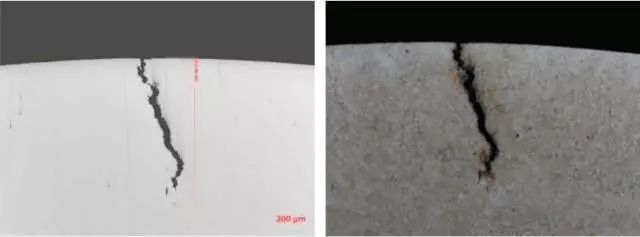 1.典型材料原因导致的裂纹,边缘为氧化物。