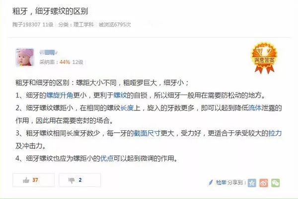 所谓粗牙螺纹,就是标准螺纹,在螺纹的国家标准中可以查到,一般我们外面可以买到的螺钉螺栓都是粗牙螺纹。细牙螺纹是相对粗牙螺纹来说的,也是有标准可查的,具体可以查阅机械设计手册。
