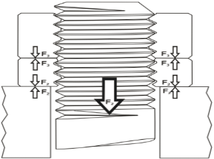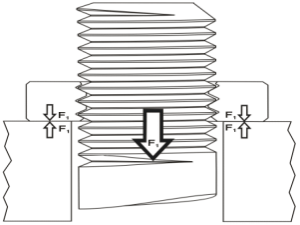 为了达到预期的防松性能,正确的拧紧也至关重要。通常我们需要将薄螺母拧紧到设计的全扭矩的30%-50%,这时将产生一个F1的夹紧轴向力,并作用在薄螺母和支撑面的界面上。