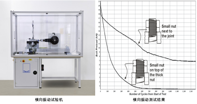 横向振动试验是一种有效的评价防松性能的方法,试验按DIN 65151执行,通过比较不同防松方案之间残余轴力百分比的差异来进行性能对比。