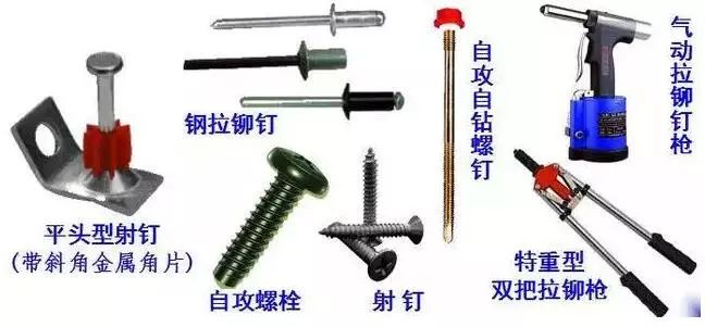 3、自攻螺栓、钢拉铆钉、射钉连接