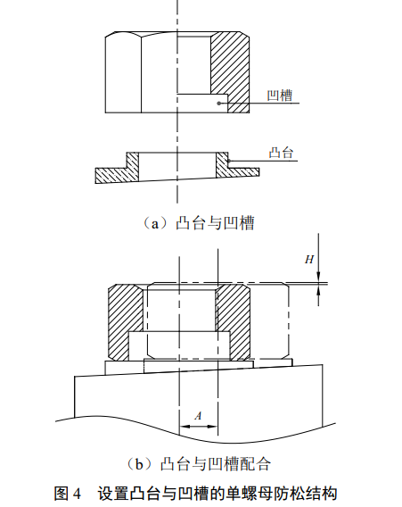 以上设计目的均为消除螺纹间隙,增加螺纹副的摩擦力,使螺母与螺栓之间形成抱紧关系,实现螺母与螺栓同时防松。