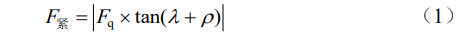 图中F为水平推力,Fq为轴向力,Ff为摩擦力,Fn为法向反力,λ为螺纹升角,ρ为当量摩擦角。螺纹拧紧时,滑块沿着斜面上升,受到的滑动摩擦力沿斜面向下,根据力的多边形平衡法则,得: