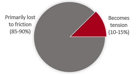 为了正确回答这个问题,首先考虑只有大约10-15%的输入扭矩实际拉伸了螺栓;其余85-90%的输入扭矩主要用于克服配合螺纹之间的摩擦和螺栓头或螺母下的摩擦。摩擦取决于许多变量,包括但不限于润滑剂类型和条件、表面粗糙度、镀层和材料,因此,即使在同一组件中的螺栓之间,摩擦也可能会发生显著变化。此外,由于摩擦力主导了扭矩-张力关系,即使摩擦力发生微小变化,也会导致螺栓张力发生显著变化。