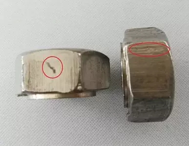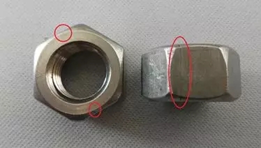 损伤的原因:如凹陷、擦伤、缺口和凿槽,因螺母在制造和运输过程中受外界影响而产生的。