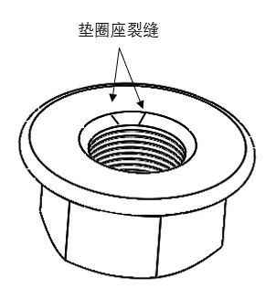 螺母-垫圈组合件的垫圈座裂缝原因:在装配垫圈的过程中,当压力施加到边缘或凸起部分时,可能产生垫圈座裂缝。
