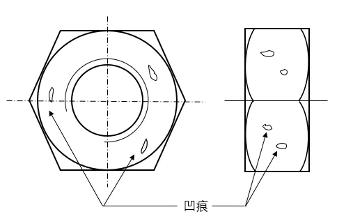 凹痕是在锻造或镦锻过程中,由于金属未填满而呈现在螺母表面上的浅坑或凹陷。