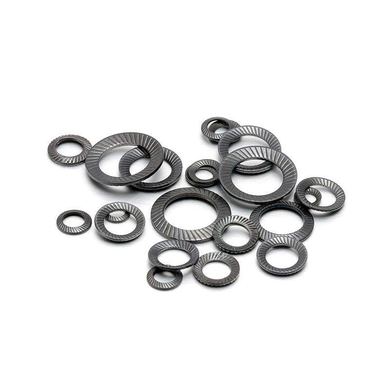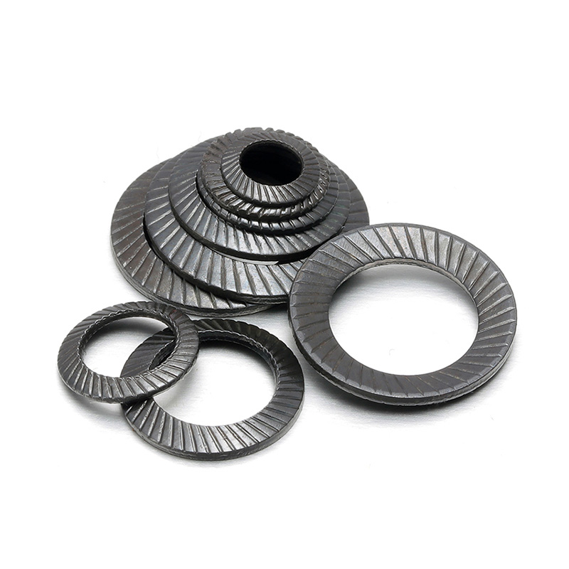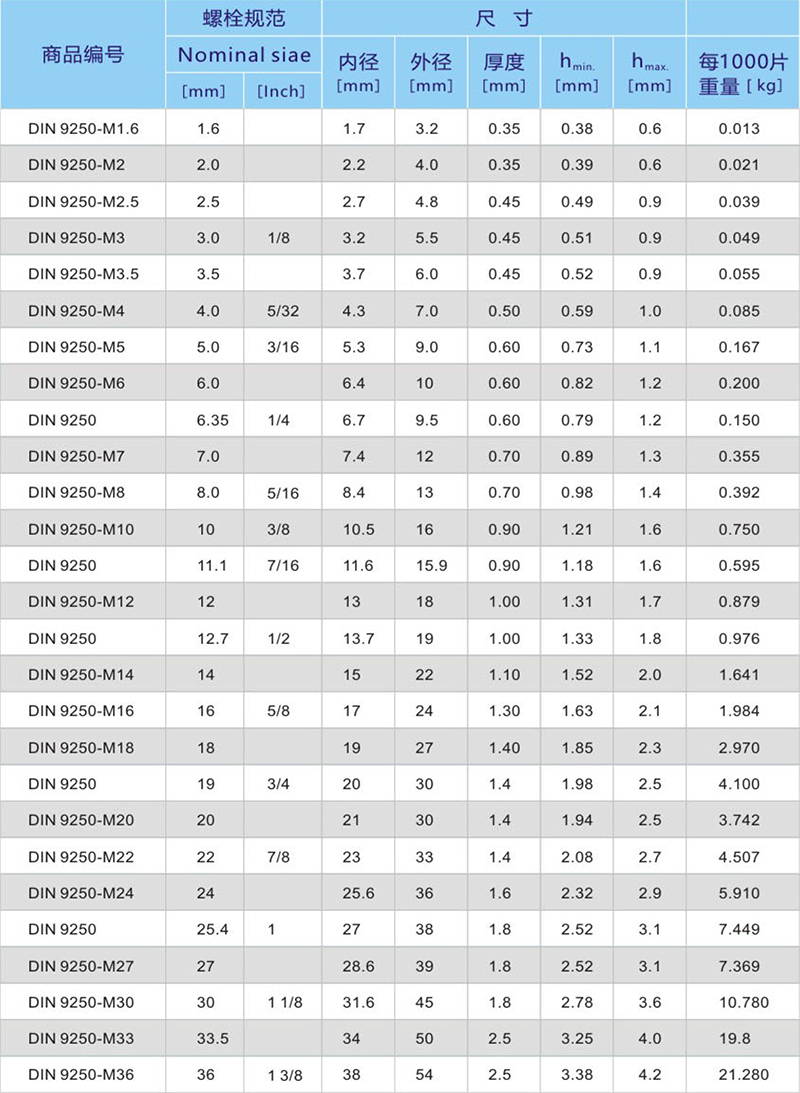 ![]() | DIN9250防松垫圈、执行德国标准、按螺栓的使用条件分为两类:8.8级以下螺栓均选用S轻型安全防松垫圈、10.9级以上螺栓均采用VS重型安全垫圈系列、目前大部分的中国地区用户由于不太了解、通常会选择轻型S系列! 全称:双面齿防滑垫、齿面安全垫圈,碟形防松垫圈。相对比普通碟形弹簧垫圈而言表面增加的齿形纹主要起到防滑和锁紧的作用,通过增加摩擦阻力更加有效避免螺栓工作过程中因松动而导致的安全隐患,一定意义上说齿面防松垫圈是碟形垫圈的改良产品,以适应不同场合的需求。产品性能相对稳定。认可度高产品技术的成熟性导致安全防松垫圈具有极高的经济经较性,已被普遍广泛使用于各工业装备领域! 碟形防松垫圈的优点: 1. 齿形构造,高幅抗震.预紧力高、不易松动。 2. 碟形设计, 载荷分配均匀, 避免弯曲扭矩损耗及螺栓变形。 3. 特殊齿纹设计.锁紧时可免除接触面的摩擦及破坏。 4. 材质及表面处理,有多重选择.具有经济与成本效应。 5. 封闭环形设计, 预紧时不会产生爆裂。 6. 垫圈的开发和设计是配合螺栓防松的使用原理,紧固力矩,锁紧结构和安装环境。 安全垫圈的应用非常广泛: 包含汽车工业、铁路桥梁,建筑工程、农业机械,除草机,纺织机,机床,汽动钻孔机,钢铁设备…等一系列产品。 根据使用环境:垫圈的表面处理通常会选用磷化发黑、及锌镍合金等全新的电镀防腐工艺! |