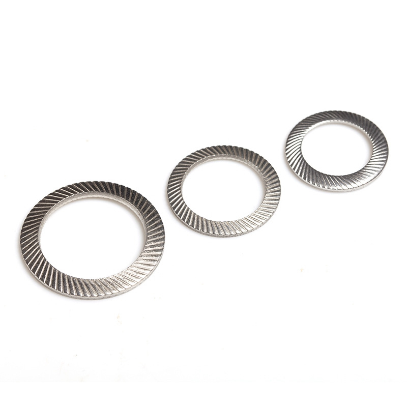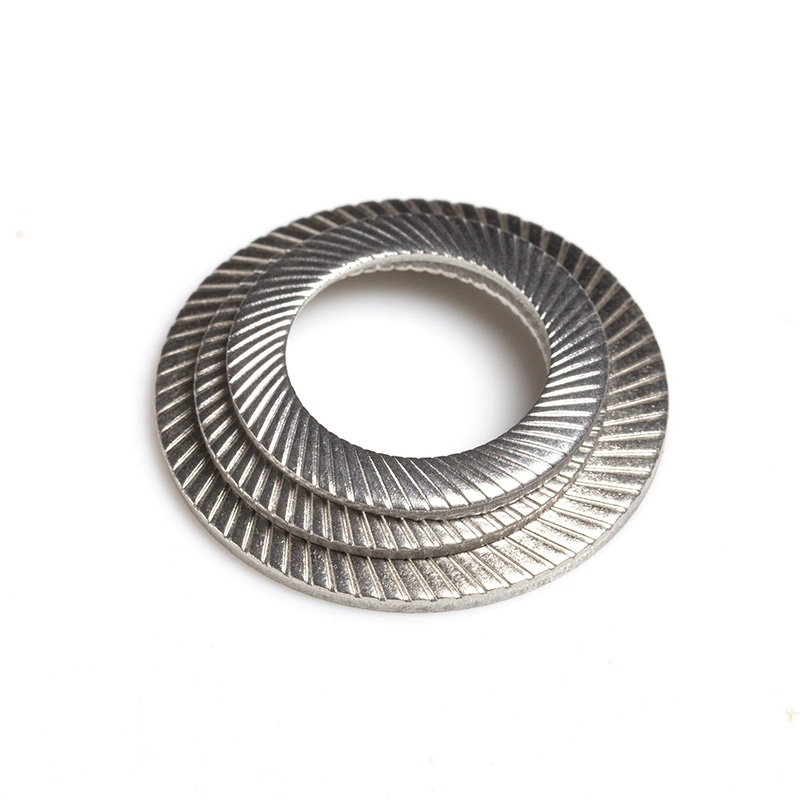 ![]() | S防松垫圈、执行DIN9250德国标准、按螺栓使用条件分为:S表示轻防松垫圈、VS表示重型安全垫圈系列、S型适用于配合不锈钢内六角螺丝装配使用! 全称:双面齿防滑垫、齿面安全垫圈,碟形防松垫圈.。相比普通碟形弹簧垫圈而言表面的齿形纹主要起到防滑和锁紧作用,通过增加摩擦阻力更加有效避免螺栓工作过程中因松动而导致的安全隐患,一定意义上说齿面防松垫圈是碟形垫圈的改良型,以适应不同场合的需求。产品性能稳定。高认可度具有经济实用性! 碟形防松垫圈的优点: 1. 齿形构造,高幅抗震.预紧力高、不易松动。 2. 碟形设计, 载荷分配均匀, 避免弯曲扭矩损耗及螺栓变形。 3. 特殊齿纹设计,锁紧时可免除接触面的摩擦及破坏。 4. 材质及表面处理,有多重选择.具有经济与成本效应。 5. 封闭环形设计, 预紧时不会产生爆裂。 6. 垫圈的开发和设计是配合螺栓防松的使用原理,紧固力矩,锁紧结构和安装环境。 安全垫圈的应用非常广泛: 包含汽车工业、铁路桥梁,建筑工程、船舶工业,阀门,食品机械,医疗器械,石化装备,化工设备…等一系列产品。 根据使用环境:不锈钢SUS304.316与相应的A2.A4材质生产的垫圈、都需经硬化处理后、表面略有磁性。 |