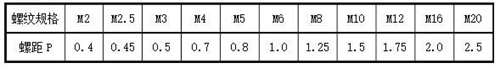 6)标准件所使用螺纹为普通螺纹,其代号为m,选用时要加以标注如M16*50,常用标准件所用螺纹的螺距见下表,表一为常用普通螺纹的螺距P(粗牙)表二为常用自攻及自攻螺纹的螺距P。