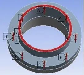 正常情况下,螺栓是施加了同样的预紧力的,假定螺栓的预紧力为98KN,如果有一个螺栓松了,说明预紧力降低了,或者没有预紧力了,这里把螺栓1的预紧力设为30KN,比其他螺栓的预紧力少了68KN,在法兰承受600KN拉力时,看看螺栓的受力有什么不同;