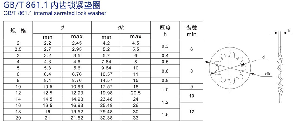 名称:内齿锁紧垫圈 GB/T 861.1